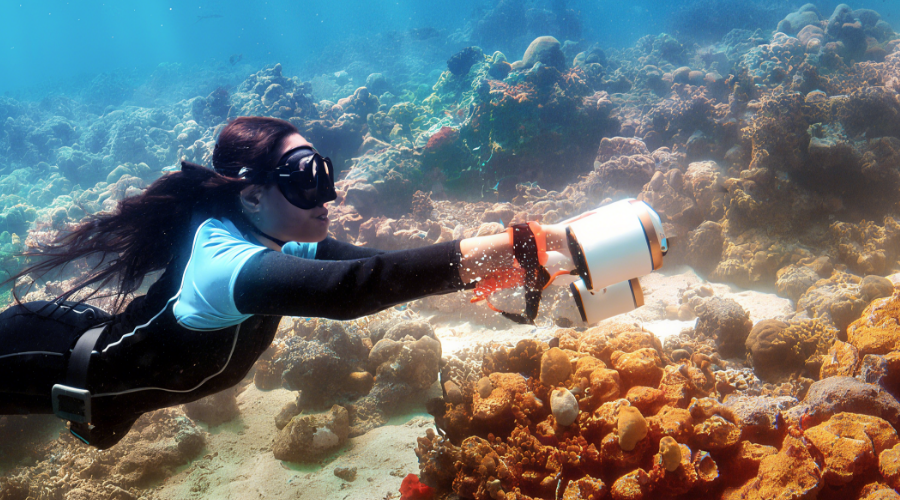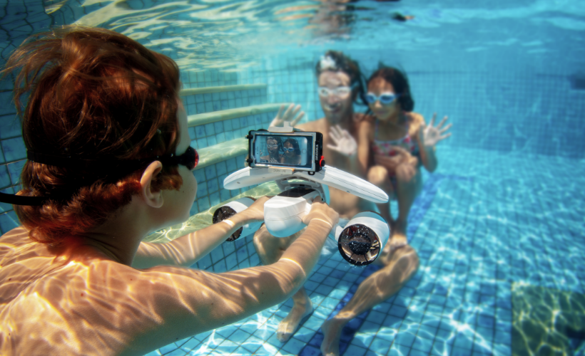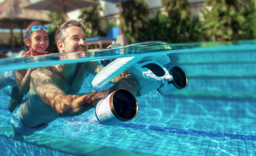 The world's first portable dual-motor underwater scooter with two-speed adjustment that can dive to 40m — reaching a top speed of 1.8m/s (4.0mph)!