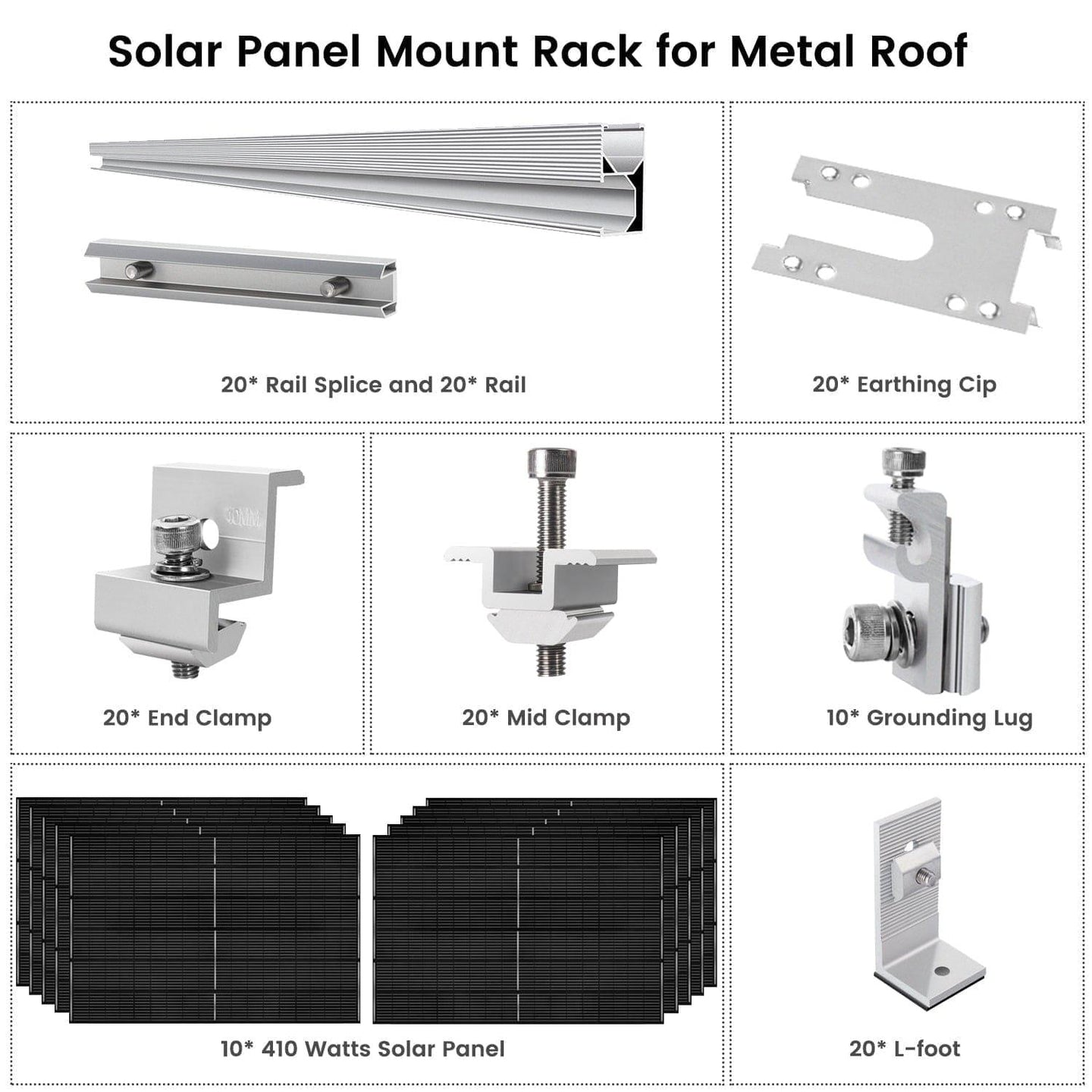 This product includes a 10 Pack of the 410 Watt Solar Panel with Solar Panel Mount Rack