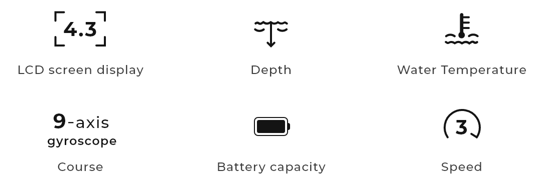 · Immersive LCD Display – 4.3-inch screen for real-time tracking of battery, speed, direction, water temperature, and depth, along with depth alert notifications.
